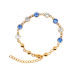 1 Piece Eco-friendly PVD Vacuum Plating 304 Stainless Steel Beaded Chain Bracelets 18K Gold Plated Blue Flower With Lobster Claw Clasp And Extender Chain 17cm(6 6/8") long