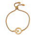 Stainless Steel Charm Bracelets Gold Plated Oval Heart Clear Cubic Zirconia 16.5cm(6 4/8") long, 1 Piece