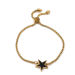 1 本 エコフレンドリー PVD真空メッキ 304ステンレス鋼 ビーズチェーン ブレスレット 18Kゴールドメッキ 黒 花 カニカンとアジャスターチェーン付き 17cm 長さ、